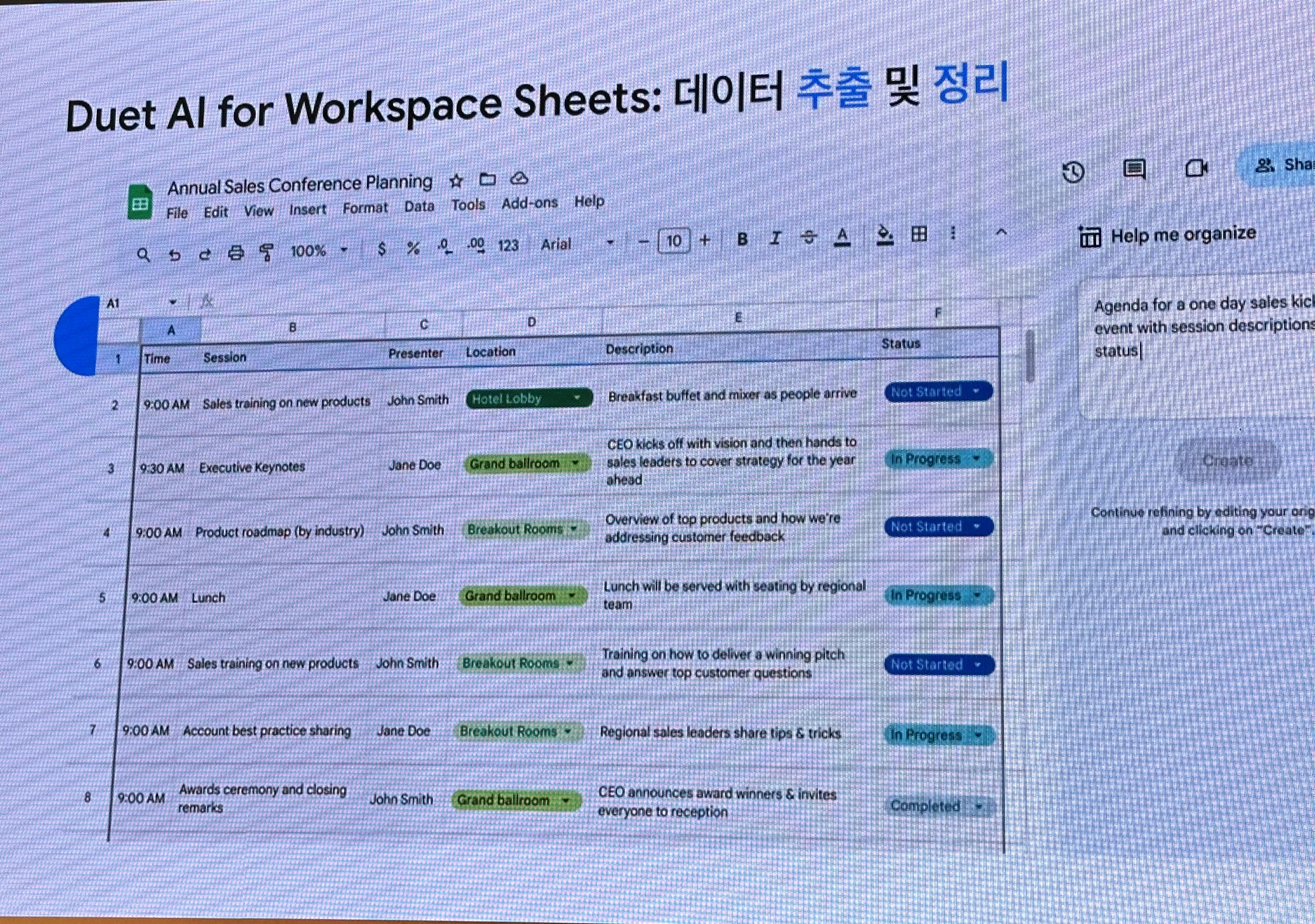 [Duet AI] : Google Workspace App(Sheet, Slide 등)을 통해, 데이터추출