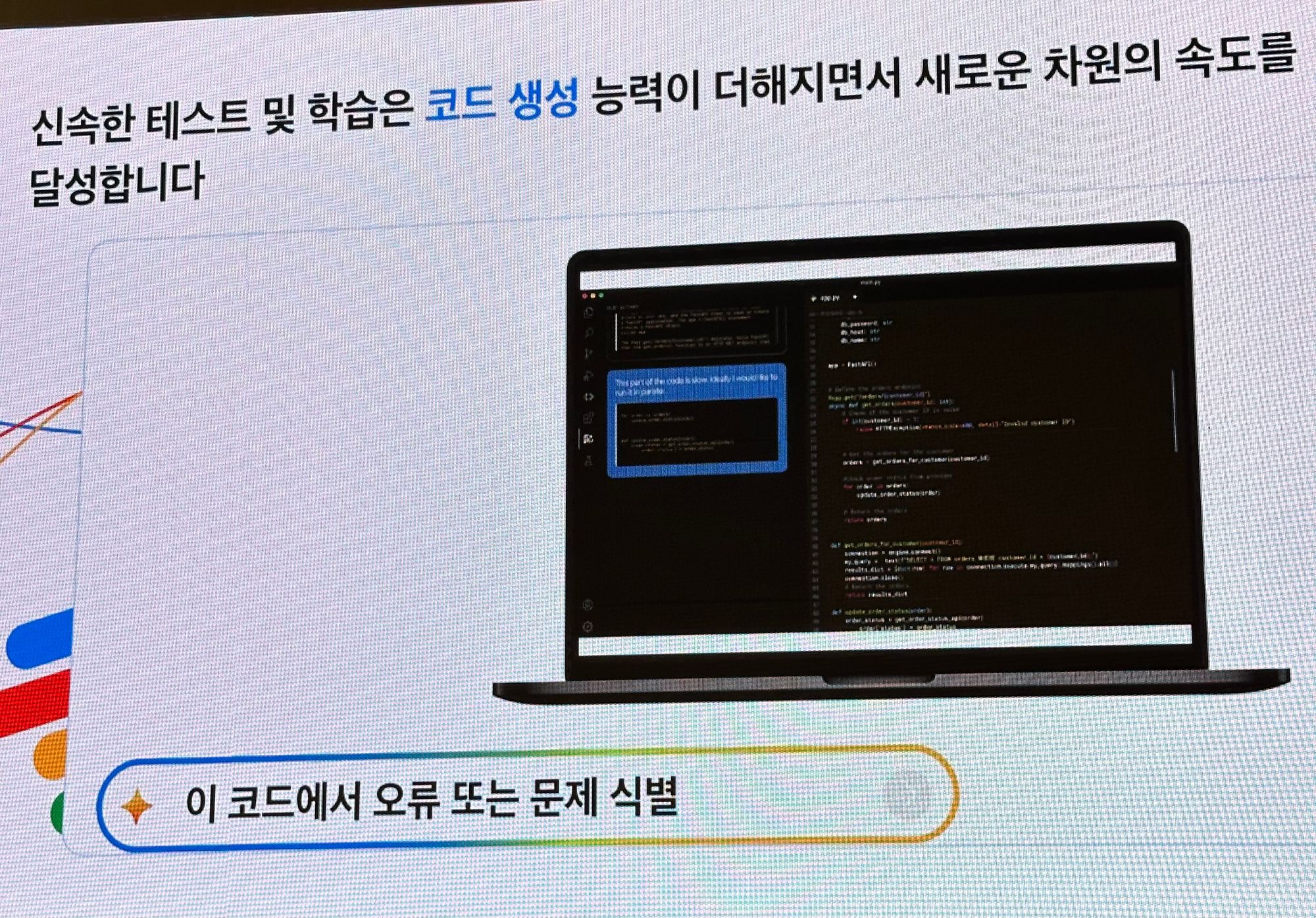 코딩 오류에 대해서 추천을 받거나, 좀 더 최적화된 코딩을 하거나, 코드를 생성해주는 등의 Support를 해줌