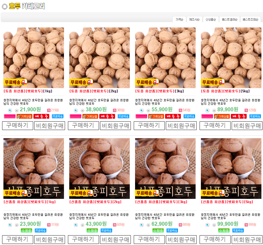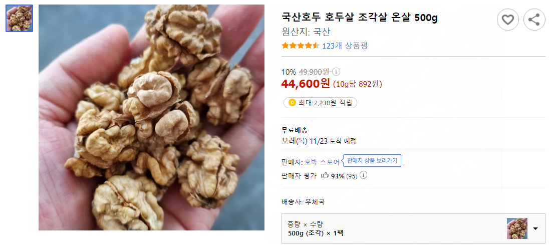 아래는 네이버에서 '국내산 호두' 를 검색했을 때 보이는 화면입니다.
