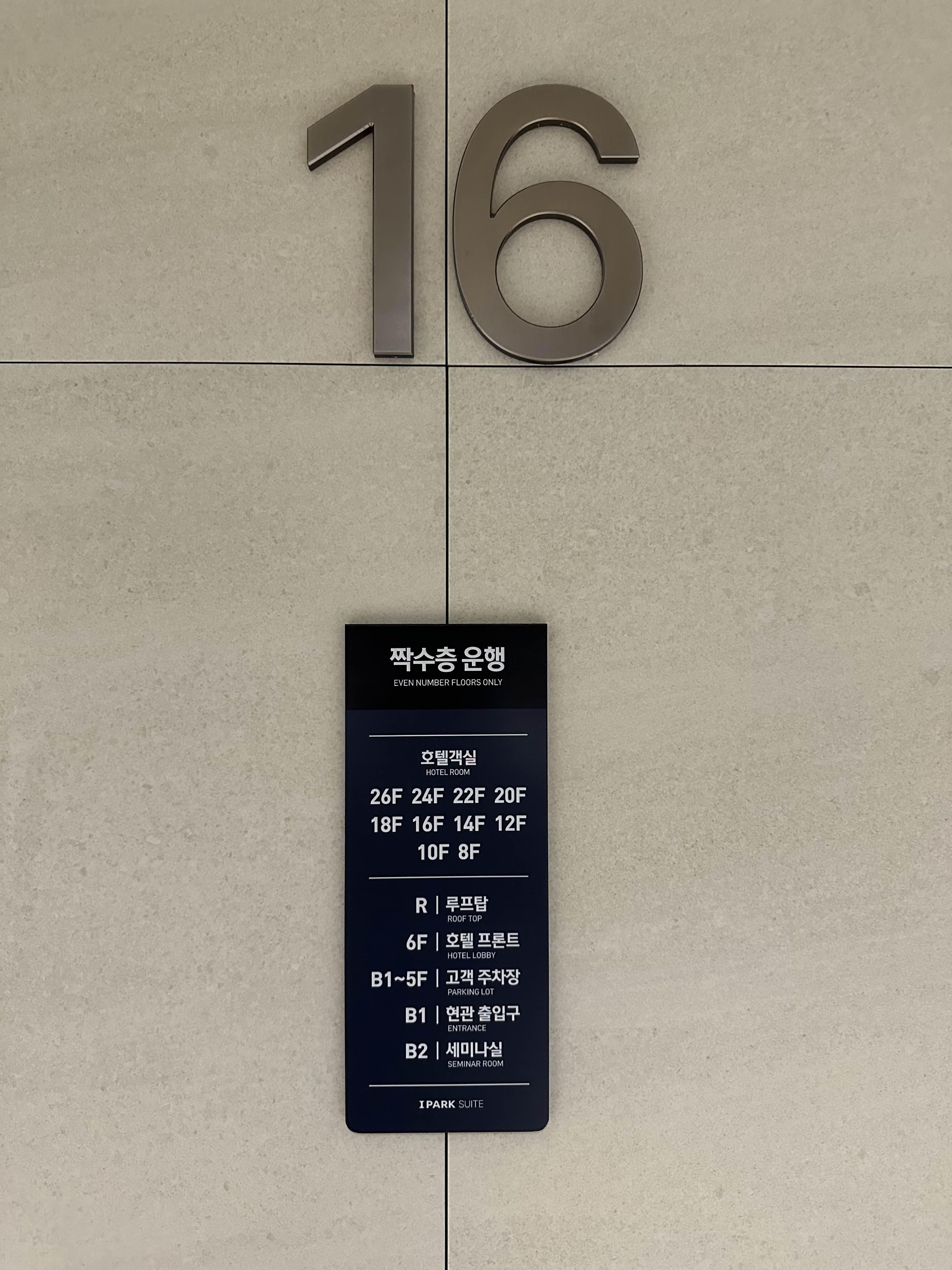 호텔 객실이 홀수층/짝수층에 따라 엘리베이터 타는 위치가 다르니