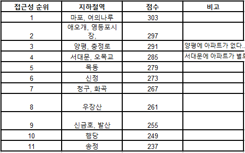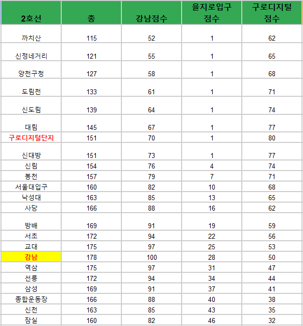 만들어진 지하철역별 점수표이기때문에