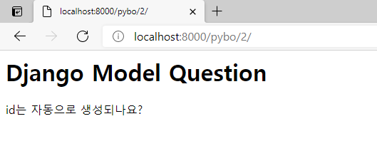 /pybo/2/의 숨은 의도는 'Question 모델 데이터 중 id 값이 2인 데이터를 조회하라'이다.