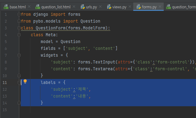 Step 4. pybo/forms.py에 장고 폼 작성하기