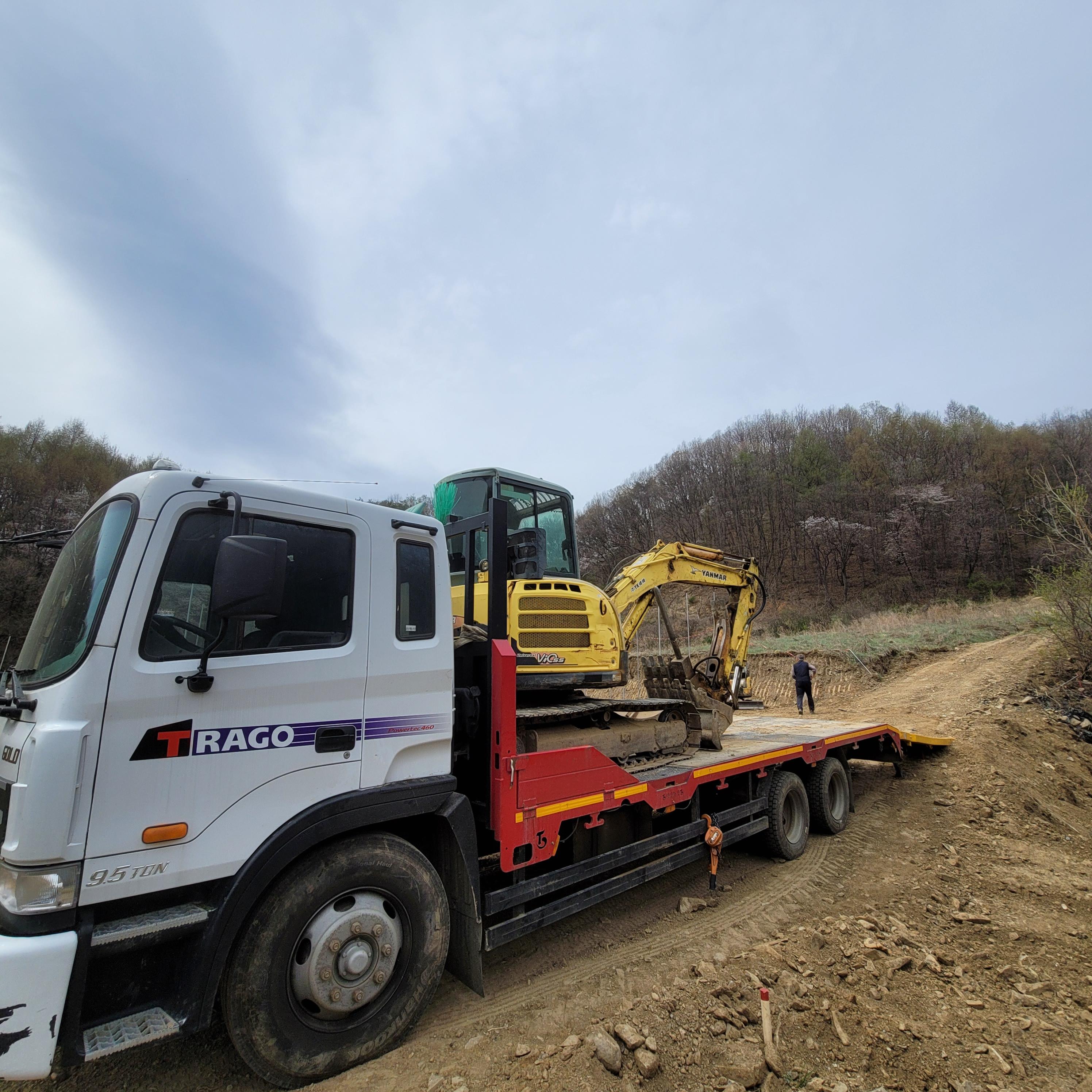 포크레인으로 배수로 만들기 및 고도가 낮은 인근땅 채우기
