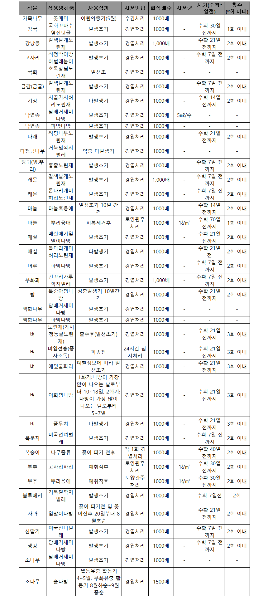 - 과수, 수목 해충방제에 광범위하게 사용되는 종합살충제입니다.